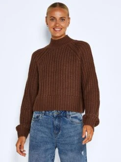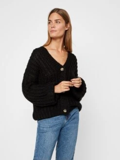 Noisy May Gerippter Cropped Cardigan Kurze V-Ausschnitt Strickjacke NMDRAKEY In Schwarz